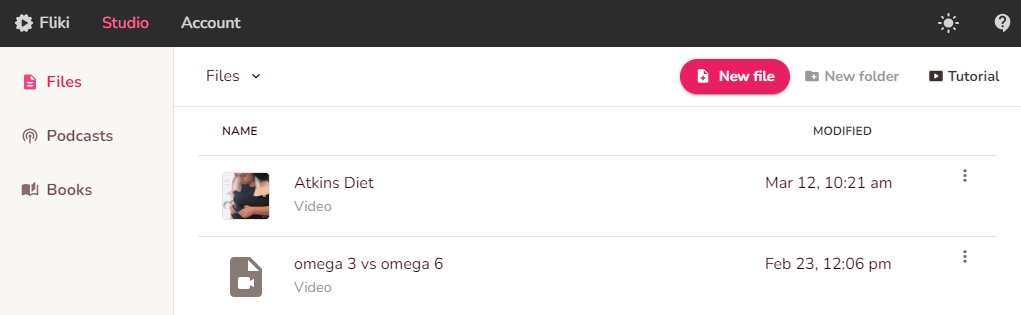 Sign up or login to Fliki and start creating your video! Click on "New file" to begin.