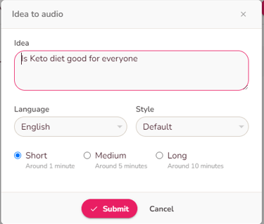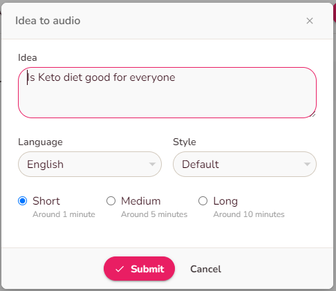 You can also convert idea or blog to audio.