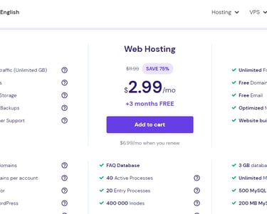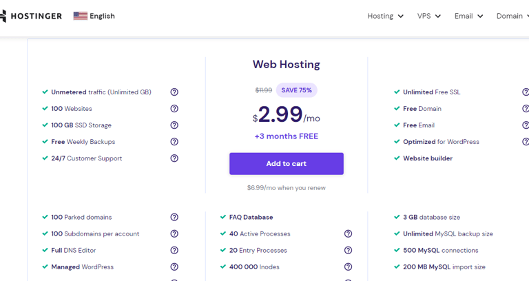 Low monthly cost $2.99 per month ($6.99 per month when renew)