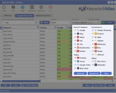 Keyword Atlas is a powerful keyword research software for getting thousands of top-ranked & highly-searched keywords from 21 top online websites!